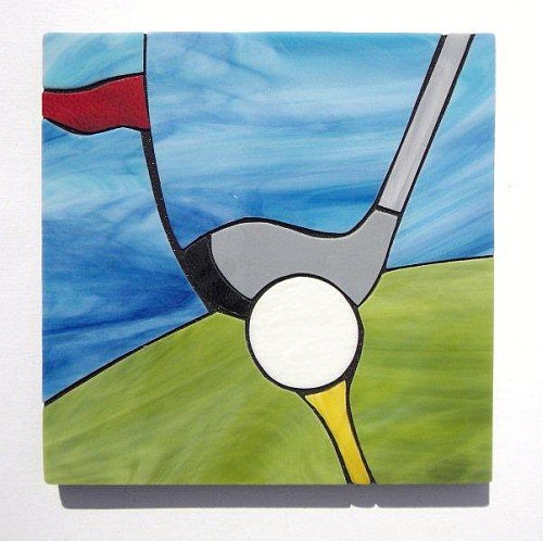 Please keep in mind that these are all handmade so there may be slight differences, especially that no two pieces of stained glass are identical. Return to Previous Page From Golf Mosaic Trivets Return to Making Mosaics Home Page |