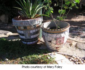 Making Mosaic Flower PotsMosaic flower pots are nice with just broken tiles but if you want you can add a flower mosaic pattern or use a border pattern that would go all around, or a combination of both. The materials and tools you will need are;